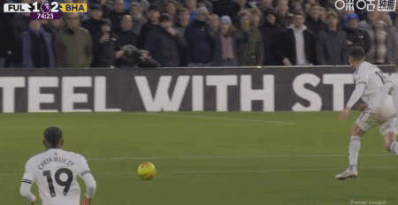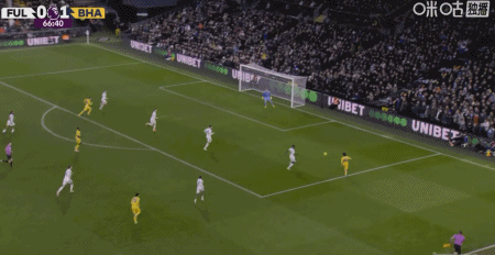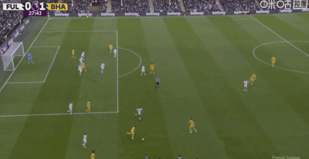 第28分鐘,阿亞里內(nèi)切勁射破門,布萊頓1-0富勒姆