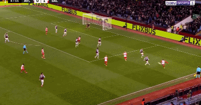 第33分鐘,明斯失誤,科納特門前掃射破門,維拉0-1薩爾茨堡紅牛